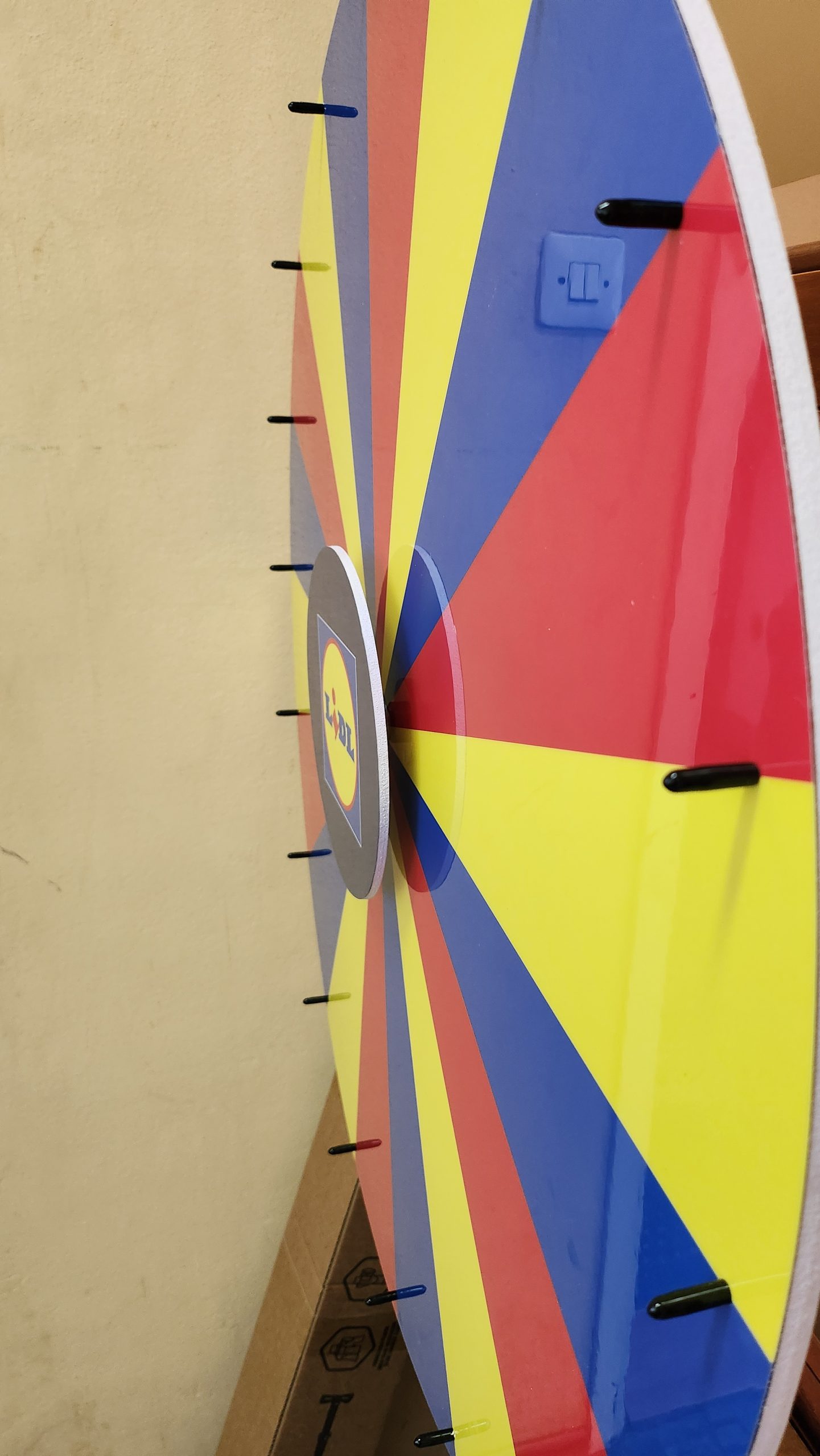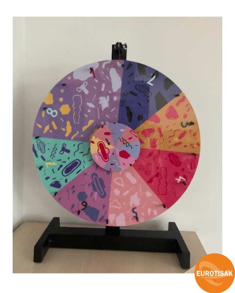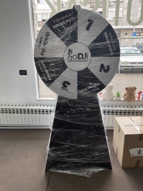 Izrađuje se u promjerima od 50, 80 do 110 cm, na stabilnom PVC ili metalnom stalku, visine A3, 170 do 180 cm. Segmenti na kolu su u potpunosti personalizirani – brojčani, s nagradama, logotipima ili porukama.