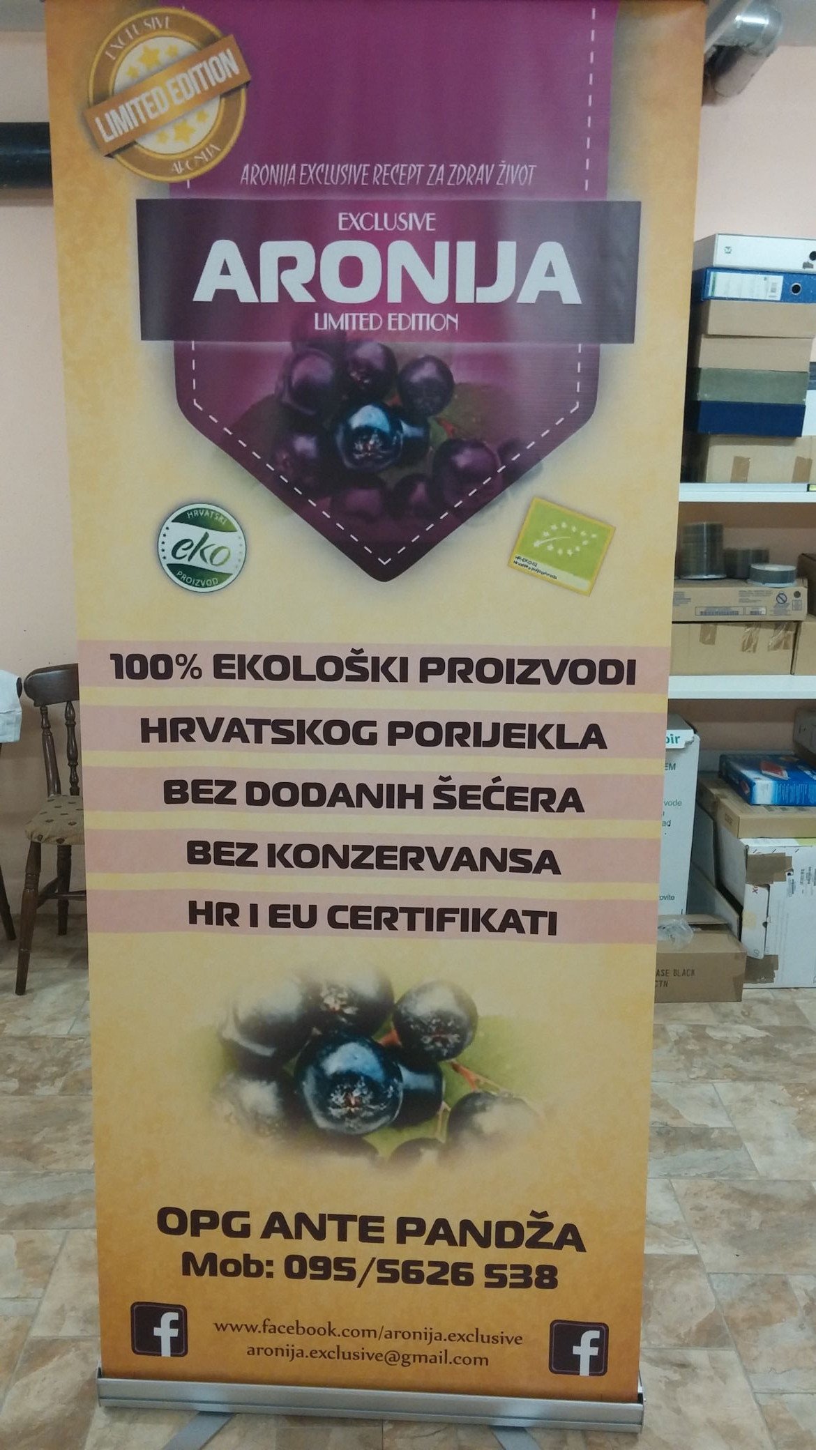 Reklama na izvlačenje ili popularno Roll-up je praktičan stalak korišten najčešće u promotivne svrhe na raznim konferencijama, skupovima, simpozijima i sl. U ponudi su najčešće dimenzije 75 x 200 cm, 100 x 200 cm i 200 x 200 cm. Sam vizual se može lako zamjeniti po završetku određenog događaja, te ga se može korisiti više puta.