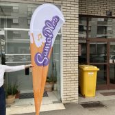Beach flag (plažna zastava) i samostojeći flag zastupaju idealan estetski promidžbeni alat na otvorenom – lagane, pokretne i vrlo vizualno efektne.
